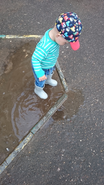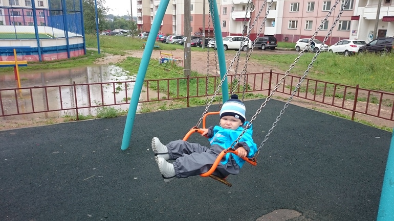 В такие дождливые дни Ванечка единственный ребенок на улице. Мне честно говоря странно это. Благо есть подходящая одежда для такой погоды,зачем лишать детишек веселья? В последний дождь мы встретили одну маму с дочкой. При том,что девочка была одета "по погоде" мать ей запретила кататься с горки,посадила в коляску, закрыла дождевиком и они удалились... А надо сказать в дождь кататься с горки гораздо веселее,летишь с нее еше и через всю детскую площадку)) Ванюха был в восторге!))