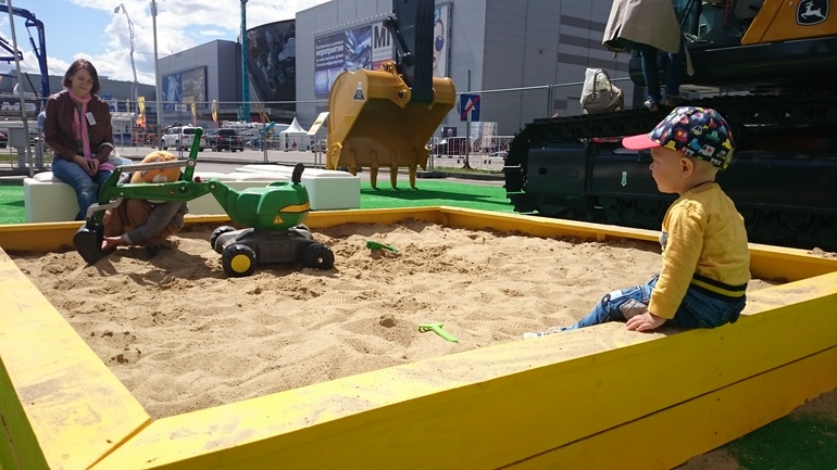 Ездили в начале июня на выставку строительной техники в крокус. Ванечка же настоящий мужчина. Любит большие машины,вертолеты,самолеты и красивых девочек))) ему очень понравилось,а точнее им с папочкой)