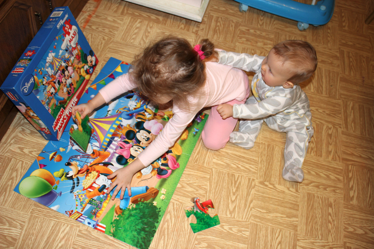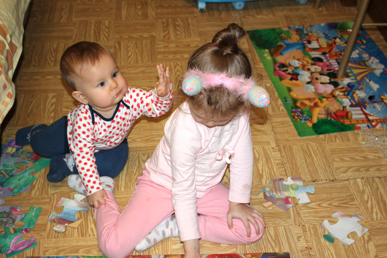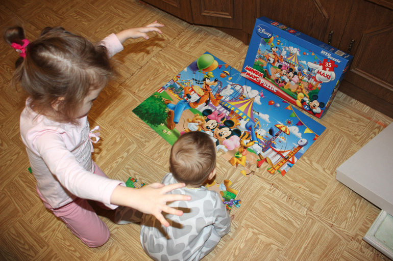 Потом у нас был день пазлов и баловства, и снежных гуляний!))