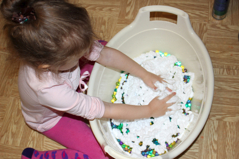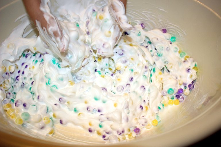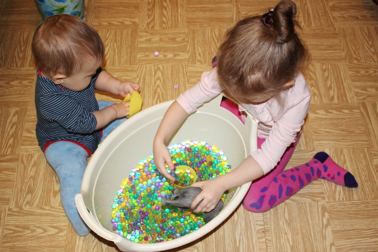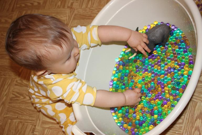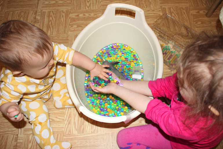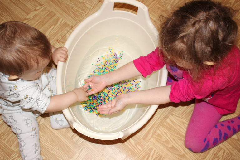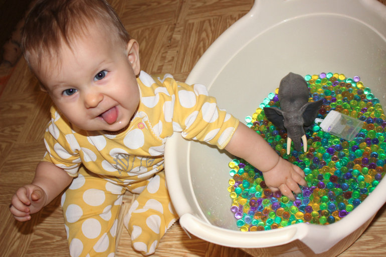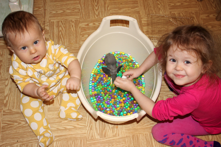 Мы вырастили 3 пакетика гидрогеля, и детки весь день провозились с ним!))
