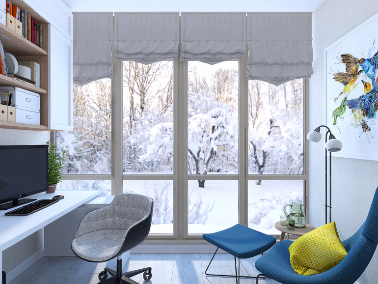 очень уютная кухня получилась! подскажите, а что делают, чтоб не было холодно на таком балконе-кабинете?))