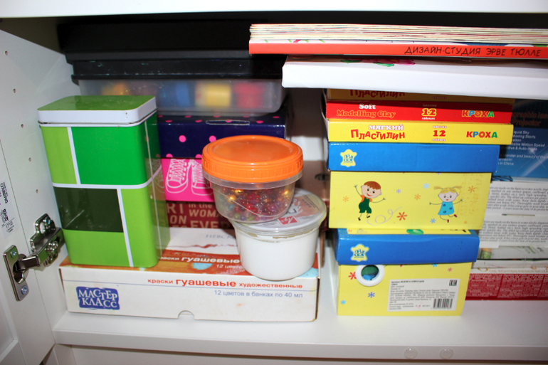 А вообще, все у нас в бесконечном движении, перестановке....)) Но зато! Дети всегда знают в какой коробочке что у них лежит, где найти... У нас никогда ничего не теряется, даже самая мелкая мелочевка. У всего свой ящичек,коробочка, пачка, пакетик...