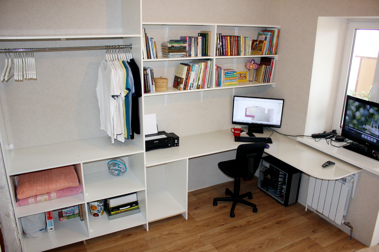 Мы обзавелись наконец-то большим удобным столом в детской и стеллажом под материалы для творчества, прописи, учебники и прочее...))