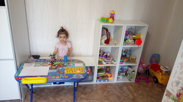 Это полка - для Жениных игр, иногда она освобождает соседнюю, там играет в лего, домик у нее...
