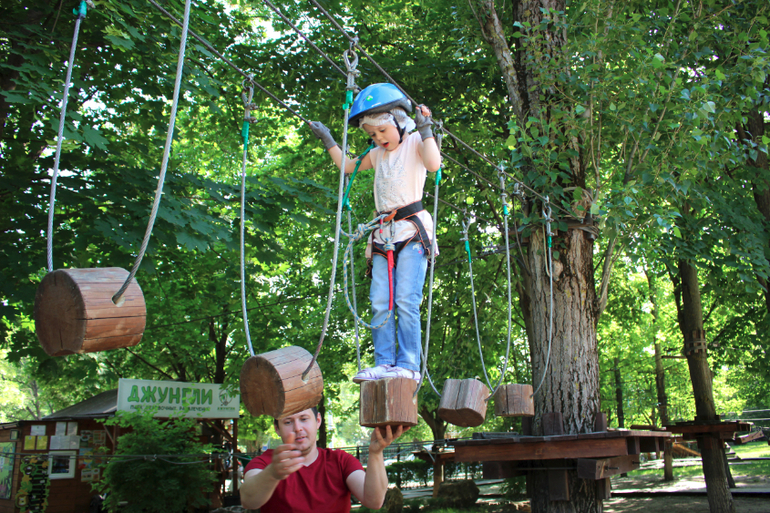 Побывали впервые в Панда-парке, Женя доросла до первых двух маршрутов)) В восторге конечно была! Я даже не ожидала ,что она так ловко справится, не испугается! Просит ещеееее!))) А вот домой возвращаться - здорово... Приехали, вышли из машины...воздууух!!! Свежий! Не то,что в городе! И комаров ,кстати, вообще нет! А в Ростове съели нас мигом! И пуха нет!!! Пух мучителен конечно(( Проезжали район, где мы раньше жили, белым-бело, деревья все облеплены, вихри ветром вздымает, пыль вперемежку с пухом(( Беее... С ужасом вспоминаю. У нас вообще очень тут уютный район, чистенько так, ухоженно, столько палисадников, цветов!
