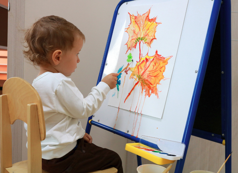 Сходили на день открытых дверей, Гоша вытеснил сестру из-за мольберта, сам уселся рисовать)) Это дело он любит! Но конечно же смысла водить его на творческие занятия нет абсолютно, все это мы и дома делаем постоянно! И в совершенно различных направлениях и жанрах. Наконец-то мы удобно организовали место для занятий, купили стульчики детям, очень довольна ими.