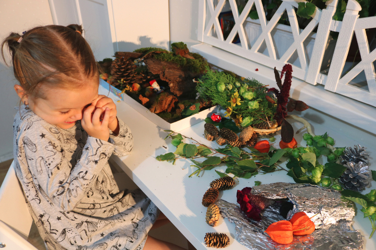 Какое же удивительное разнообразие природных материалов можно использовать в играх! Смело заявляю ,что игра не надоедает уже третью неделю, пополняется и трансформируется, основные игрушки ,что дополняют сюжеты - фигурки плеймобиль ,пальчиковые куколки из ИКЕА, лего-эльфы.
