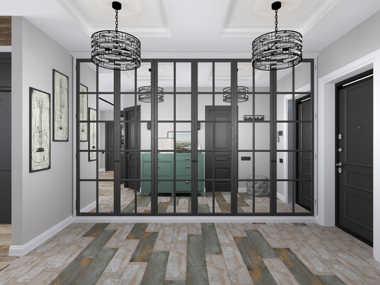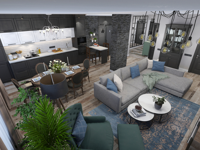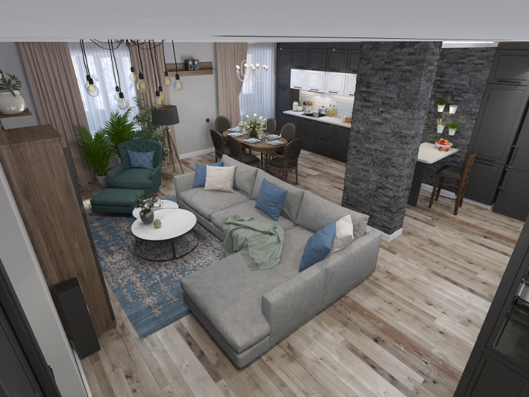Дано: молодая семья, пока без деток, но в будущем конечно ожидается пополнение. Квартира более 120 м2. Из пожеланий - много мест хранения, мужские нотки, брутальность. Дерево в интерьере. Уют, камерность. Хотелось максимально открытого пространства для кухни-гостиной и две большие жилые комнаты. Нарезать комнатушек не стали. Семья любит принимать друзей, путешествия, музыку, коллекционирование, комнатные растения!)
