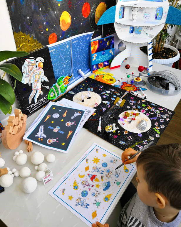 Тему космоса в этом году осветили очень широко и обширно! Заказывала коробку от колобокс с космическим наполнением, очень интересно! Дополнила наши занятия.