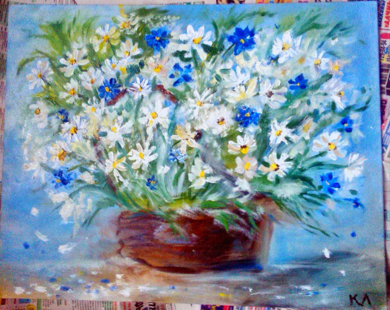 Недавно нашло вдохновение. Рисовала картину на ДР бабушке и тёте.Вот что получилось.