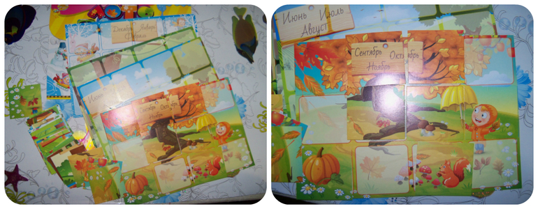 И есть у нас покупное лото "Времена года". Вот тут беда. То ли лото Миру не нравится, то ли он принципиально не хочет отличать зиму от осени или весну от лета, но оно никак не получается. Я уже и так, и так пробовала. Играть в него соглашается, но вот собирать целую картинку не хочет и ему принципиально все равно, где какое время года (надо бы комплексное занятие подготовить, наверное).