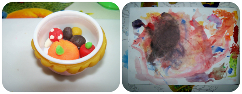 Осенний урожай лепили, заодно повторили про съедобные и несъедобные грибы.
