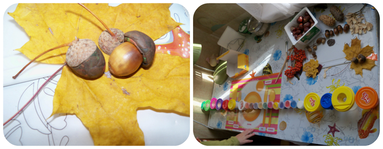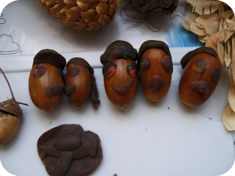 Из пластилина и желудей делали грибы и наоборот - лепили желуди и шапочки надевали.