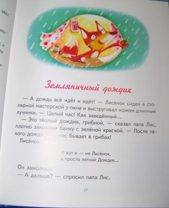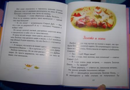 Эта книга, безусловно, на вырост. Историю про золотую осень я читала больше для себя. Хотя Миру понравились и оказались понятнее истории про эхо и земляничный дождик. Иллюстрации почти как в мультфильме из детства. Кстати, Земляничный дождик я даже читаю с теми же интонациями, не специально, но по-другому не получается.