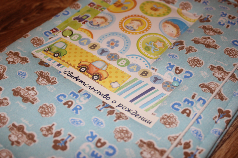 Папочка в голубом тоне-для мальчика)))Я очень люблю сочетать бумагу из разных наборов-мне так головной мозг уносит))))))В общем смотрим)))))))Это прекрасный подарок вашему ребенку, для его первого в жизни главного документа. Внутри файл для хранения свид-ва о рождении и место под фото вашего малыша