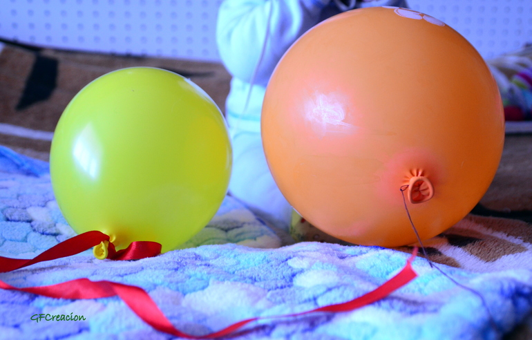 2. Надувные шарики различных цветов и форм надуваются до 15-20 см в объеме, привязывают к ним ленточку и показывают малышу (можно сначала только веревочку, за которую он может схватить и притянуть к себе шарик - тренируем мелкую моторику). Затем малыш неизменно пытается шарик обхватить, сжать, пососать, а шарик за счет своих свойств постоянно улетает от человечка. Малышу приходится ползти за ним (тренируем физические навыки). Ваньку вся эта история занимает минут на 20.
