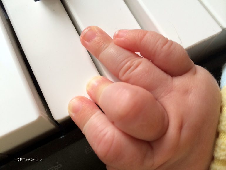 6. Мы с мужем считаем, что любовь к творчеству нужно развивать с пеленок, потому мы вовсю красим пальчиковыми красками. Да Ваня пока не очень понимает, что цветной след на листе оставляет его палец, но я не теряю надежды, что в скором времени он сообразит. Так было с синтезатором, сначала мы нажимали на клавиши его ручкой, а потом он сам стал нажимать, причем слушает, что играет папа, и в промежутках старается подыгрывать.
