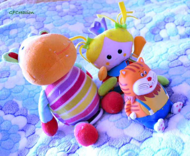 3. Для стимулирования ползания по всей комнате/квартире можно разложить игрушки на разном расстоянии или под разным углом (параллельно и т.д.) (я кладу игрушки одной тематики: одного цвета, одного типа (погремушки или ролевые игрушки (принцесса, дракон и т.д.), одной формы, но разных размеров (развиваем понятие размера), одного размера, но разных геометрических форм (развиваем понятие формы). Привлекаю ванюшино внимание к каждой игрушке по очереди, на изучение каждой у него уходит какое-то время (минут по 5 в среднем). Играть можно долго.