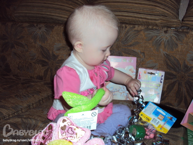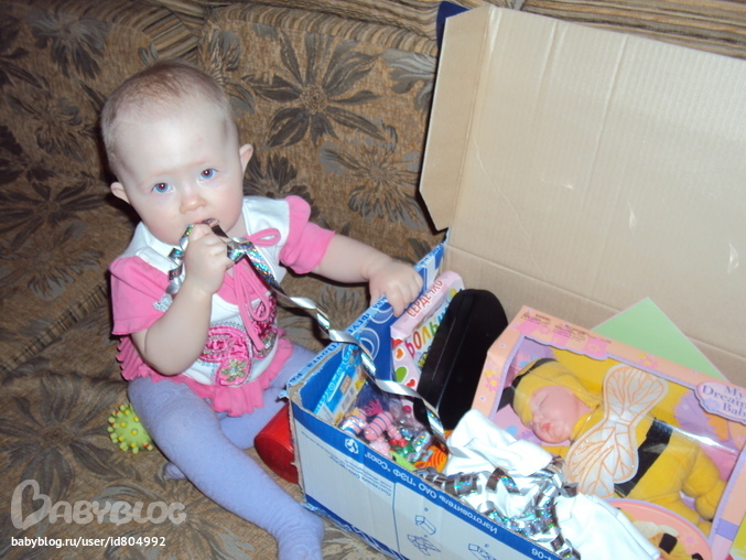 Наше внимание сразу привлекла ленточка ,которая была красиво завязана( это то что нам нужно )у нас страсть к ленточкам ,бантикам ,завязкам.