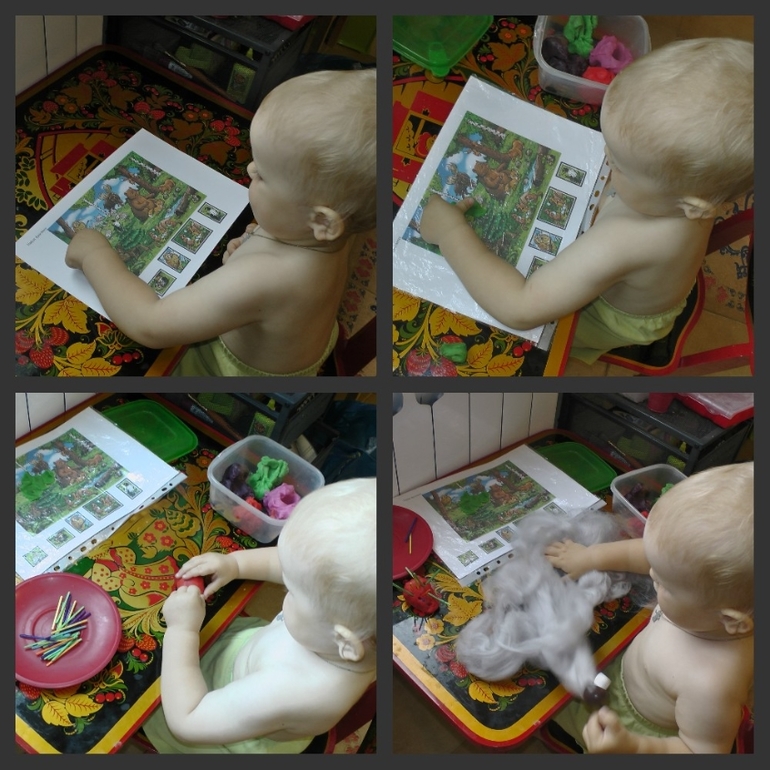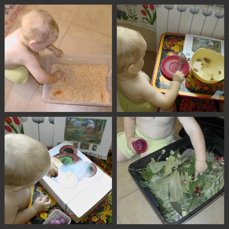 Зайчику нашли морковку. Вытаскивали из воды желуди ( сколько же там червяков). Кормили мишку малиной. Сделала сенсорную коробочку из сухой травы, листьев. Спрятала там фундук. Боря нашел один орех, и то не стал давать белочке. Зато с удовольствием нюхал различные растения из коробочки. Рассмотрели там листочки.