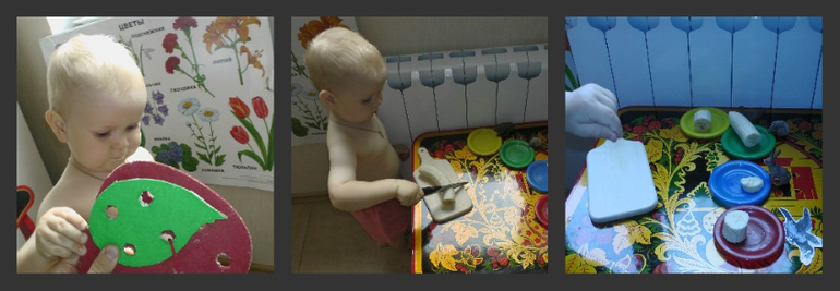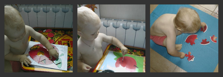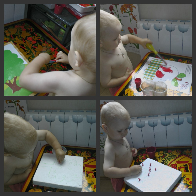 Собирали яблочко. Делать гусеницу руками Боря не захотел, не любит пачкать руки. Поэтому было решено это сделать с пом ватных палочек.