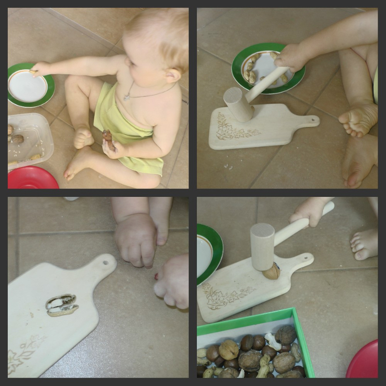 Сделала сенсорную коробку из орехов: грецкий, макадамия, арахис, фундук, каштан.