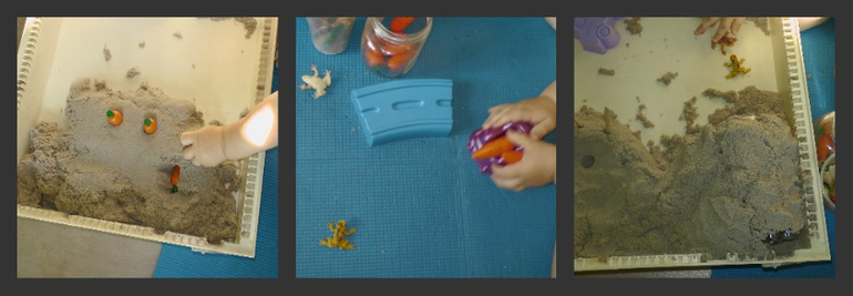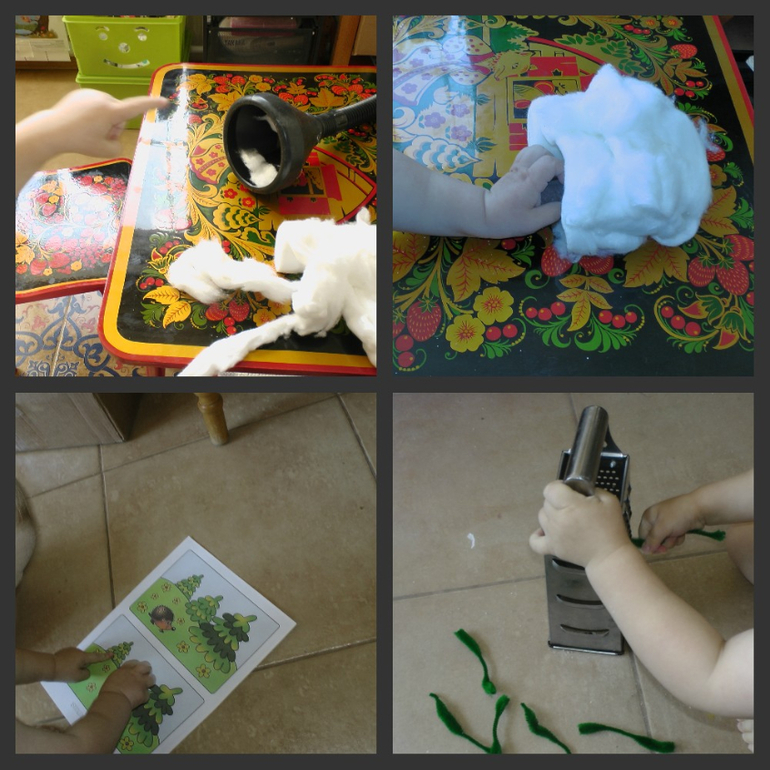 Лазили как барсучки по тоннелю. Делали берлогу для мишки из ваты.