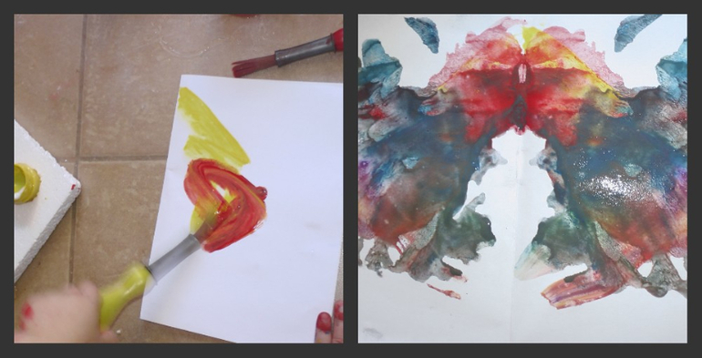 Делали птичку сказочную. Потом сложили бумагу пополам.