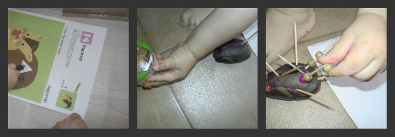 Разукрашивали хвост белке. Делали ежика и запас еды для него.