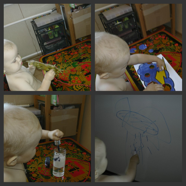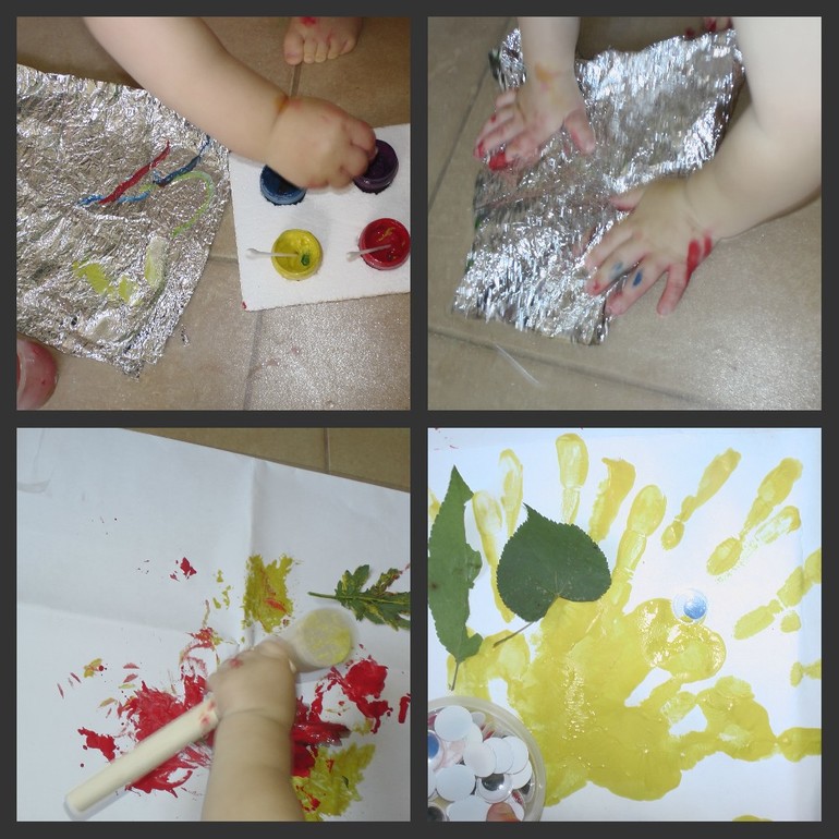 Хотела чтобы Боря с пом ватных палочек делал следу на фольге, как на снегу. Сынок стал так рисовать, а потом все спрятал.