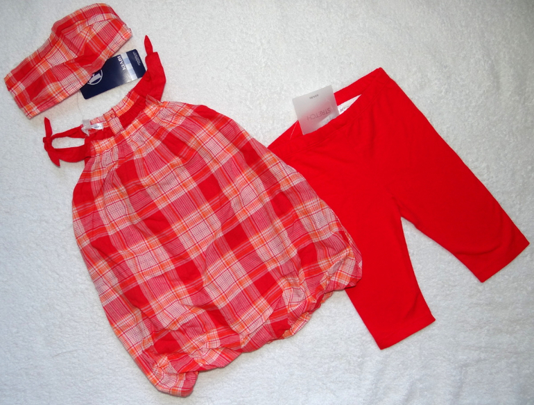 18) Комплект новый -сарафан тоненький, двойной, воздушный + лосинки(капри)+ повязка на голову, фирмы Kiabi размер 24 мес (2 года).