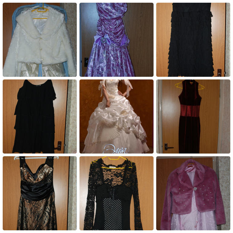 МНОГО - МНОГО платьев. Есть шубки. Вечерние и свадебное.( на фото не все)