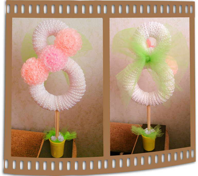 К 8 марта делали с Любой поделку на выставку. Люба, как всегда руководила)
