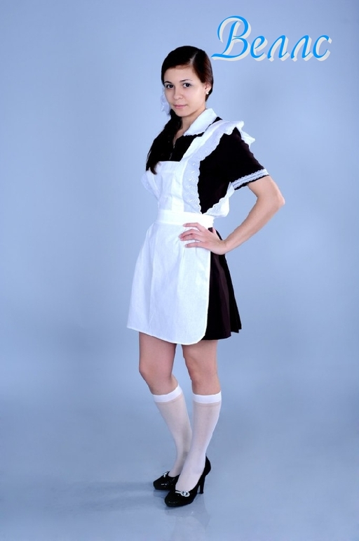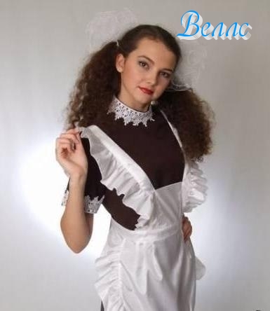 Школьная форма СССР с длинным рукавом и гипюровым фартуком.
