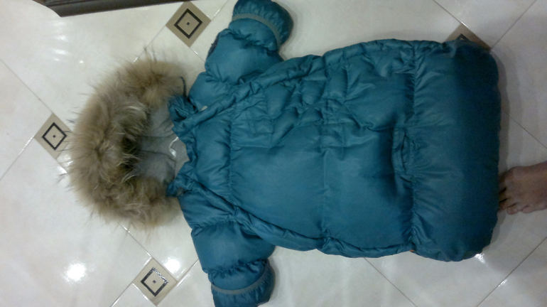Конверт очень теплый и удобный. Состояние очень хорошее, без дыр, пятен, ЕСТЬ несколько затяжек на рукавах, т.к. ткань очень нежная, совсем незаметных при ксплуатации, после химчистки кантик на рукавах потерял вид, все стараласи отобразить на фото.