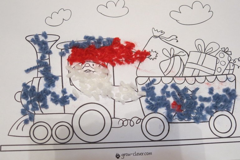 Заданием Деда Мороза будет сделать гирлянду.Я подготовила заготовки из цветной бумаги, но это Лину не впечатлило, помогала немного мне мазать клеем.