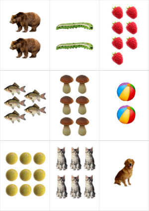 Картинки все идентичны. Поэтому показав одну карточку для запоминания, при выборе можно выкладывать сколько угодно много, хоть все. Мы уже прокачались и в выборе из двух картинок сын всегда дает правильный ответ. А вот из 3 или 4 - иногда ошибается, видимо, глаза разбегаются :).