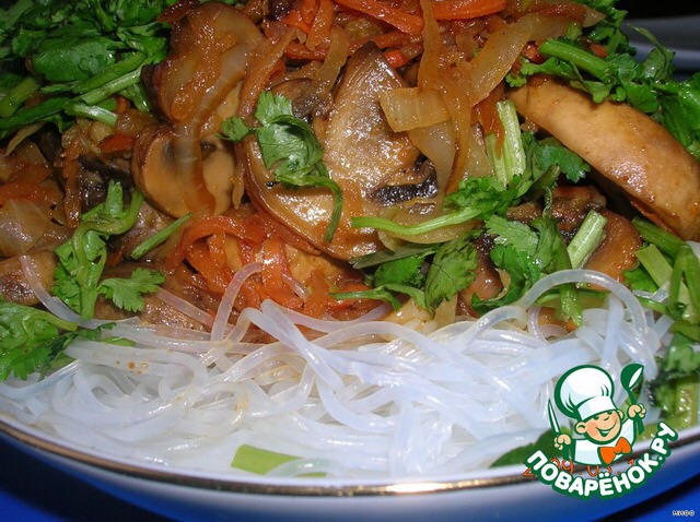 Крупная морковь на терке по-корейски. Посолить и пожамкать, чтоб сок дала. Рыбку почистить и порезать на кусочки. Крупную луковицу порезать полукольцами. Часть отправляю к моркови, а часть жарю на раскаленном масле до сильного потемнения, потом этот лук нам не понадобится. Соединяю рыбу с морковью и луком. Делаю углубление туда складываю чеснок через пресс и приправы для моркови по-корейски (перец жгучий, кориандр молотый, перец черный), сахар. Далее на все приправы выливаем масло и перемешиваем. Потом добавляю 3 ст. л. уксуса 9% и 2 ст. л. соевого соуса. Украшаю кинзой. По этому принципу делаю хе из судака с огурцом.