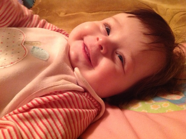 Любит слушать как мама и папа поют ей детские песенки, от радости повизгивает,дрыгает ручками, ножками.блльше всего нравится песенка красной шапочки и улыбка.