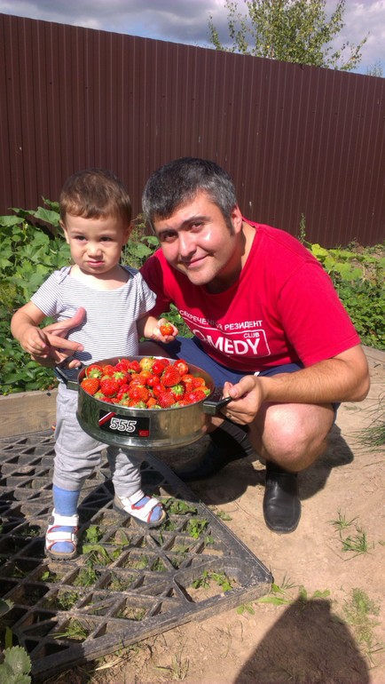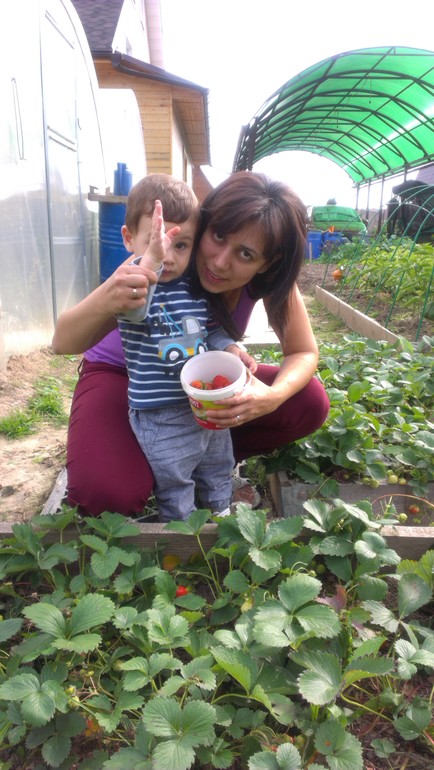 Практически все лето (не считая нашего отпуска в Болгарии - кстати с меня еще отчет о нашем отпуске с фотками!!! И не считая наших заболеваний, когда мы лечились и были дома в Москве) мы провели на даче, начиная с мая и заканчивая концом сентября (правильно, мы все еще на даче и собираемся закрывать дачный сезон в конце сентября). Мише здесь очень хорошо: свежий воздух!!!, огромный просторный дом-не то что наша двушка в москве; огромный просторный двор, огромный огород, который держит моя мама с моей бабушкой, где растет все свое домашнее (помидоры, огурцы, любая зелень, фасоль, лук, клубники хоть завались было и в июне и в августе, груша, слива, смородина, картошка, кабачки, тыква, редиска и т.д. и т.п.), и Мише интересно все это ни только изучать, но самому рвать и поедать. За лето мы выучили таким образом все овощи)