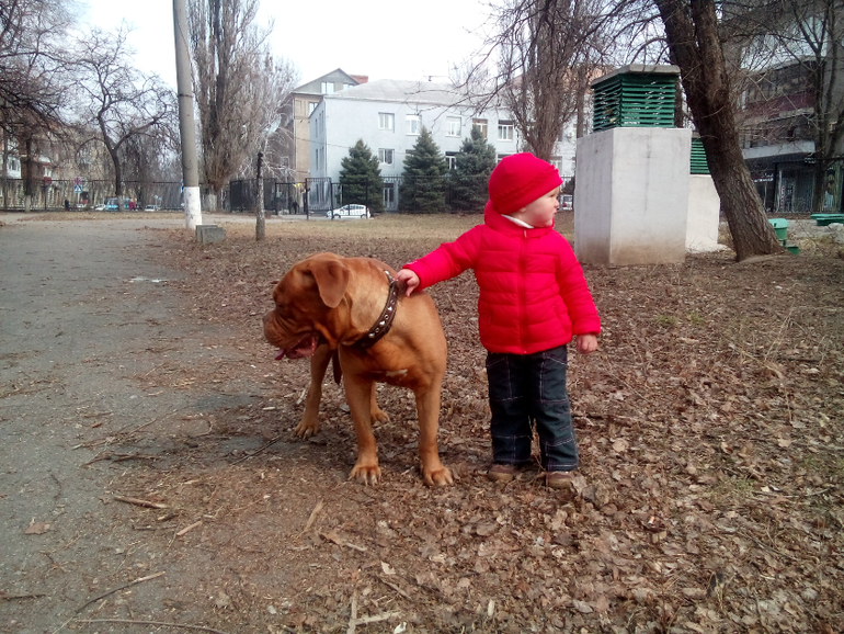 У нас на районе жил кобель огрооооомный и спокойный, ростом с немецкого дога и пропорциями бордоского. Такой няша был! Умер от старости несколько лет назад.