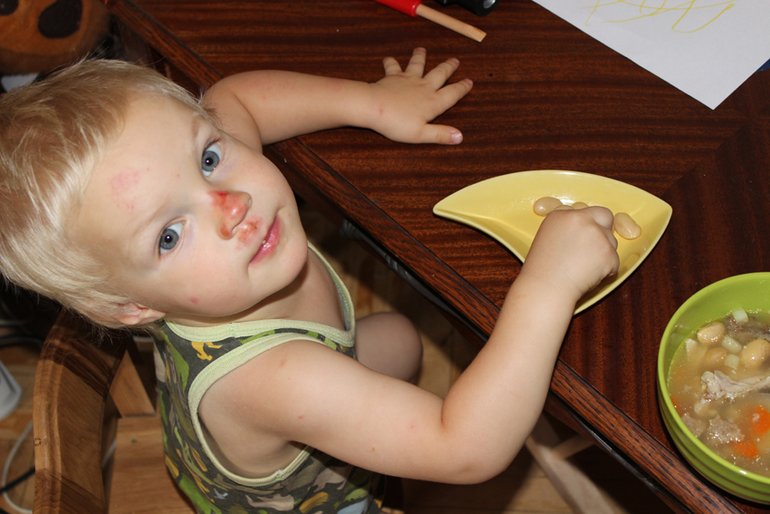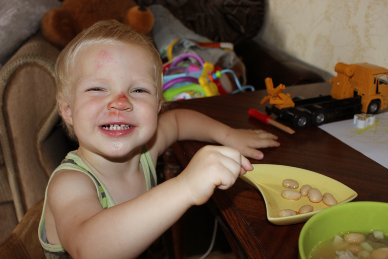 Суп ест 2 раза в день, по пол-миски)) С мясом и хлебом. Начал обожать бананы. Если раньше я шкрябала ложкой и давала, а от семечек он начинал давиться, то теперь он руками отодвигает ложку и тянется ртом укусить. Откусывает полноценный кусок, бежит по своим делам, жует на ходу, бежит обратно опять кусать. А если я или муж едим, а он нет - обязательно будет бегать и клянчить, сувать нос в тарелку)) И сейчас напишу такое... Купила как-то сардельки, детские, по госту, нам с мужем на обед со спагетти. Дала попробовать Мире. Это ужас, что началось, Мирка аж покряхтывал от восторга, так он балдеет от предвкушения сиськи)) Откусывал и жевал)) Сделала ему из индейки домашнюю колбаску, так он сегодня на ужин с картофельным пюре за обе щеки уплетал, а до этого пюре вообще не ел.