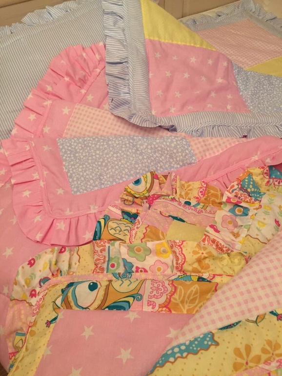 Пледы из натурального хлопка (ткань поплин) очень мягкие, не линяют, не садятся при стирке. Очень красивые, нежные цвета. Ручная работа. Размеры 150/200 и 220/200