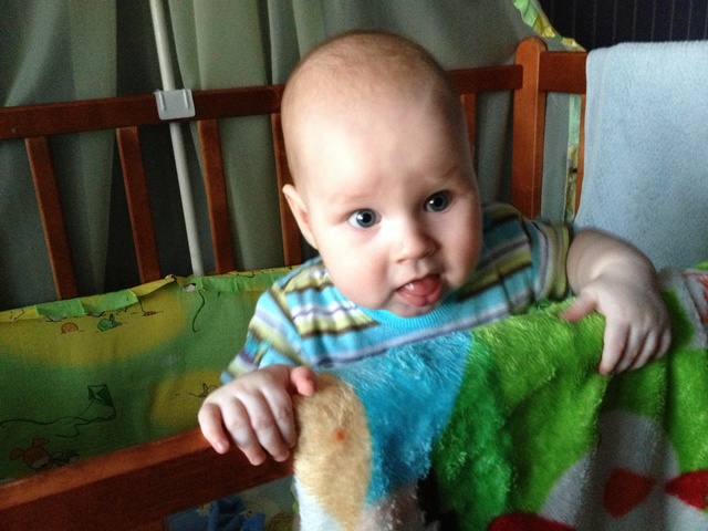 -а сегодня наш манюня встал сам на ножки в кроватке!!! Умница!