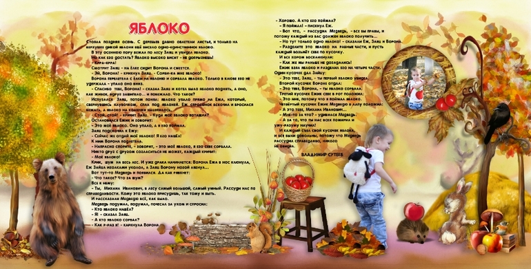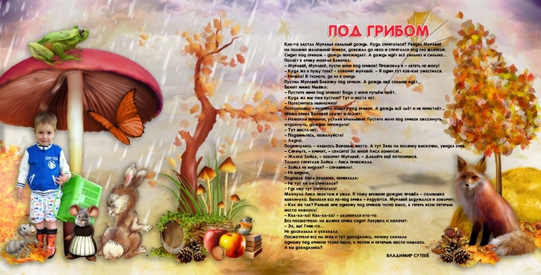 - сказки "Яблоко" и "Под грибом" В. Сутеева;