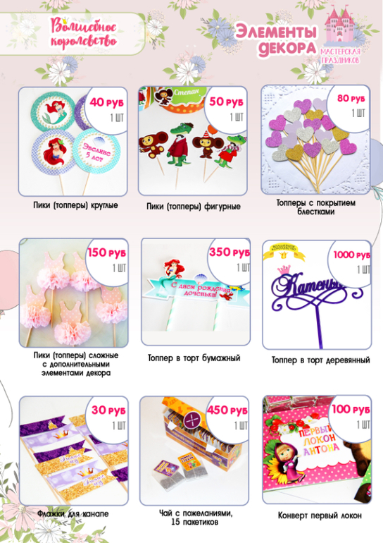 - тематические наборы бумажного декора для оформления детского дня рождения и взрослых вечеринок, свадеб, нового года и других праздников;