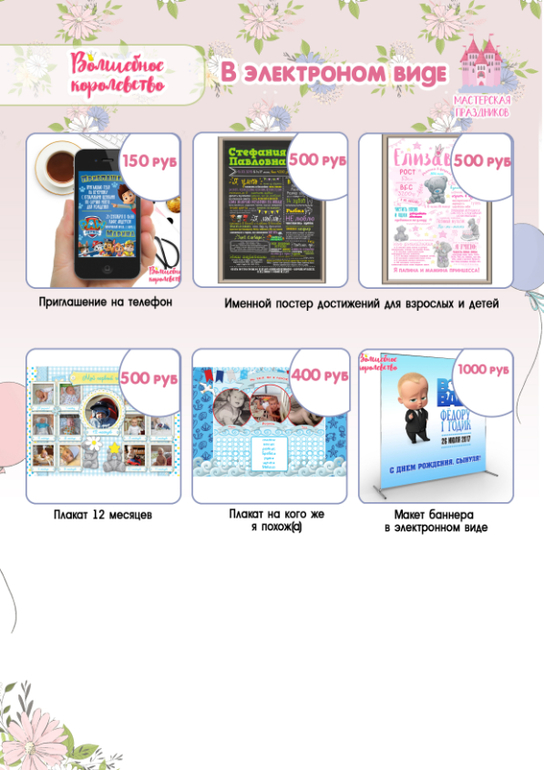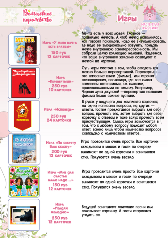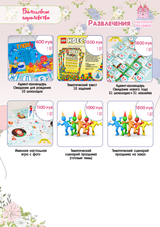 - авторские сценарии любых праздников (дни рождения, корпоративы, 14 февраля, 8 марта, 23 февраля, хэллоуин, новоселье)
