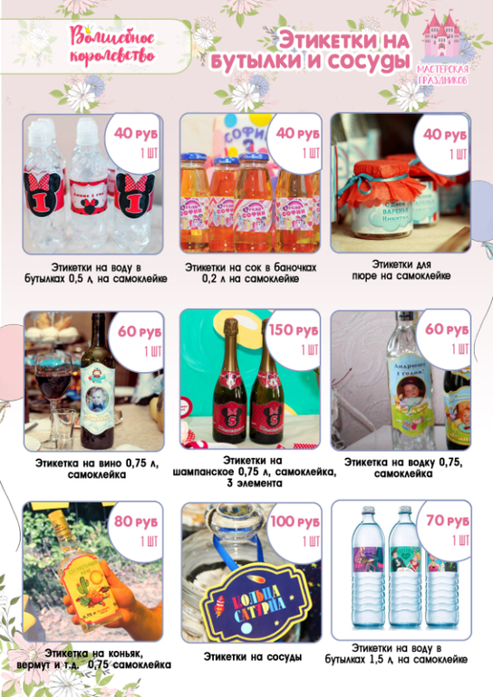 - Надписи на шоколадки, пики, шпажки, ярлычки, этикетки и пр., если ничего не указано,