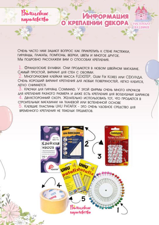 - Список элементов набора и нужное количества каждого элемента, размер плакатов и баннеров.
