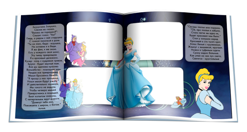 Детские фотокнигиВаша дочка обожает сказку Золушка? Подарите ей замечательную яркую сказку с ее фотографиями на каждом развороте и стихотворным текстом! В книге 10 разворотов, вот некоторые из них